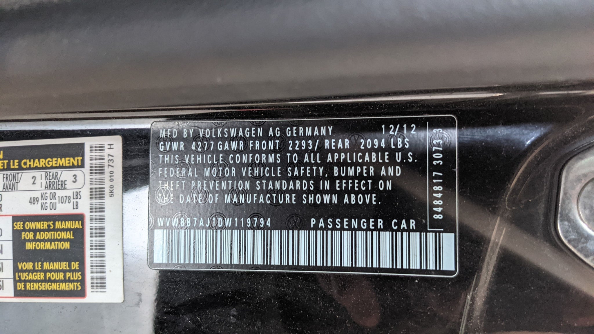 2013 Volkswagen Golf Stock # R06039 VIN # WVWBB7AJ1DW119794