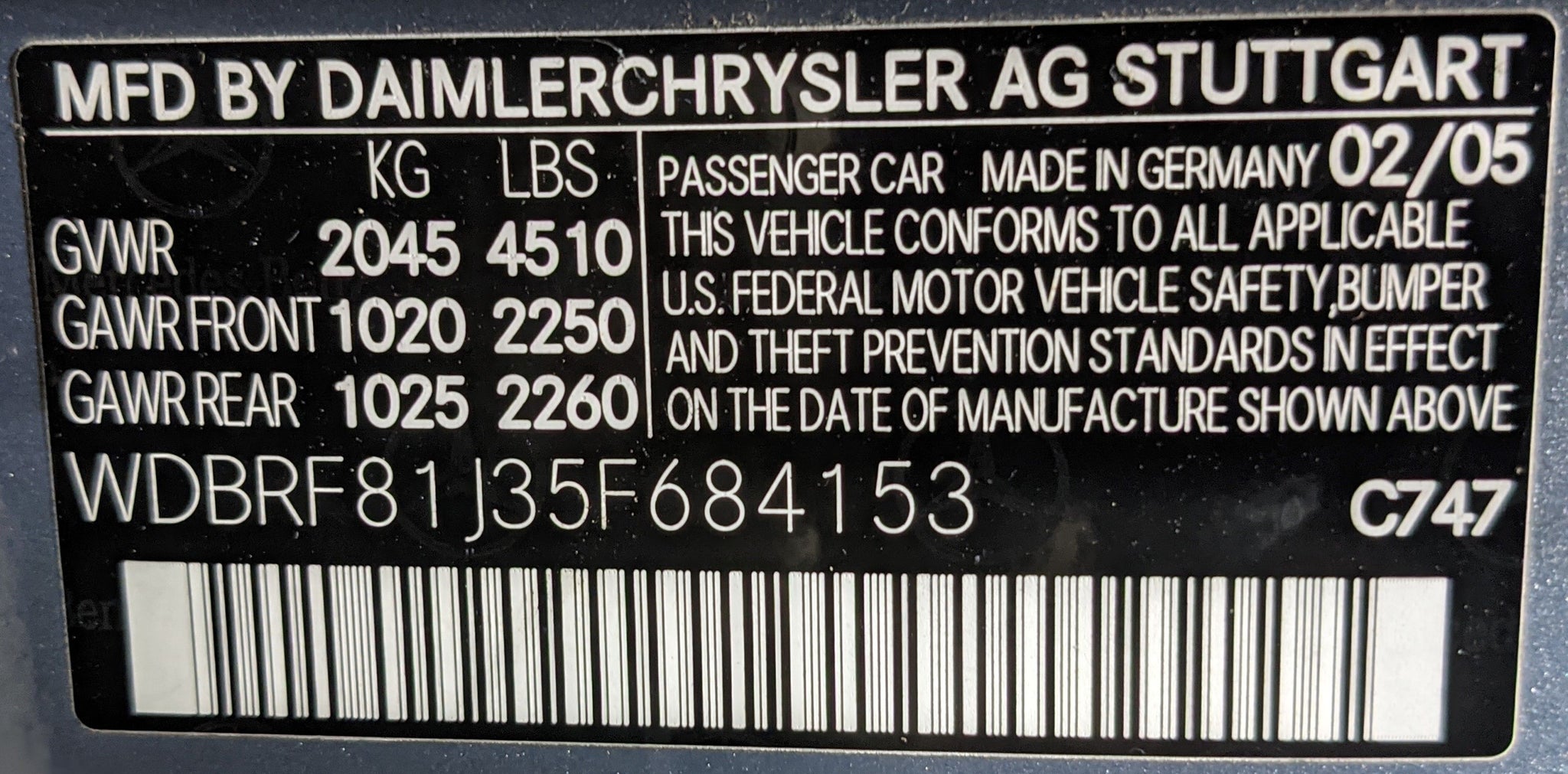 This item is being pulled from the Vehicle Shown below2005 Stock # R08014 VIN # WDBRF81J35F684153
