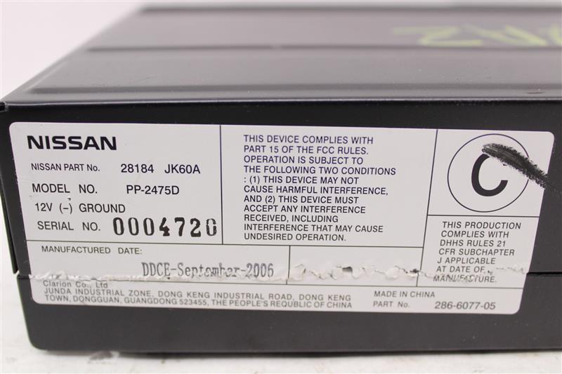 INFINITI G35 07-08 CD changer (Sdn, 6 disc, trunk mounted)Donor Vehicle