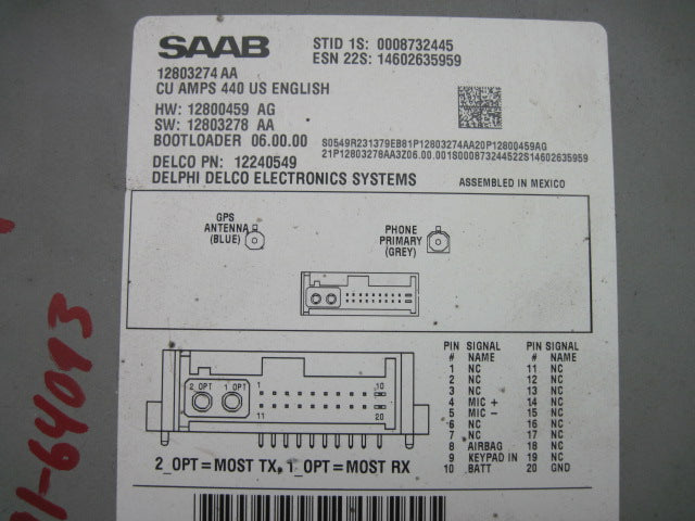 SAAB 9-3 03 Communication; Sdn (4 Dr), navigation (trunk mounted), computerSAAB 9-3 04 Communication; navigation (trunk mounted), computer, w/o phone key pad