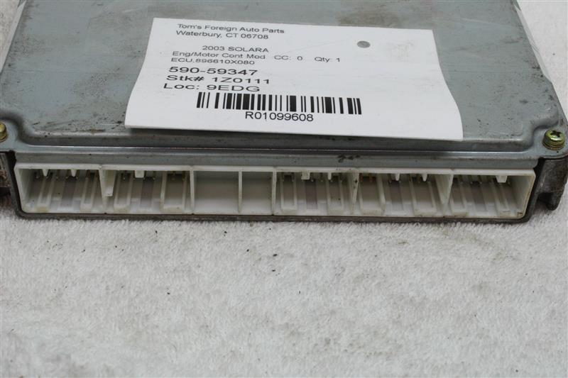This is a quality Used OEM Computer pulled from a 2003 SOLARA and covered by our standard 6 Month Money Back Guarantee. This can be considered the ECU, Engine Computer, Main Computer or ECM. Some computers will require programming in order to work with your vehicle. Consult your local dealership or mechanic for more information on programming. Our guarantee does not cover any programming charges. Don’t hesitate to contact us if you have any questions about this item or any other items we have for sale.Our Part #: 590-59347-1Z0111