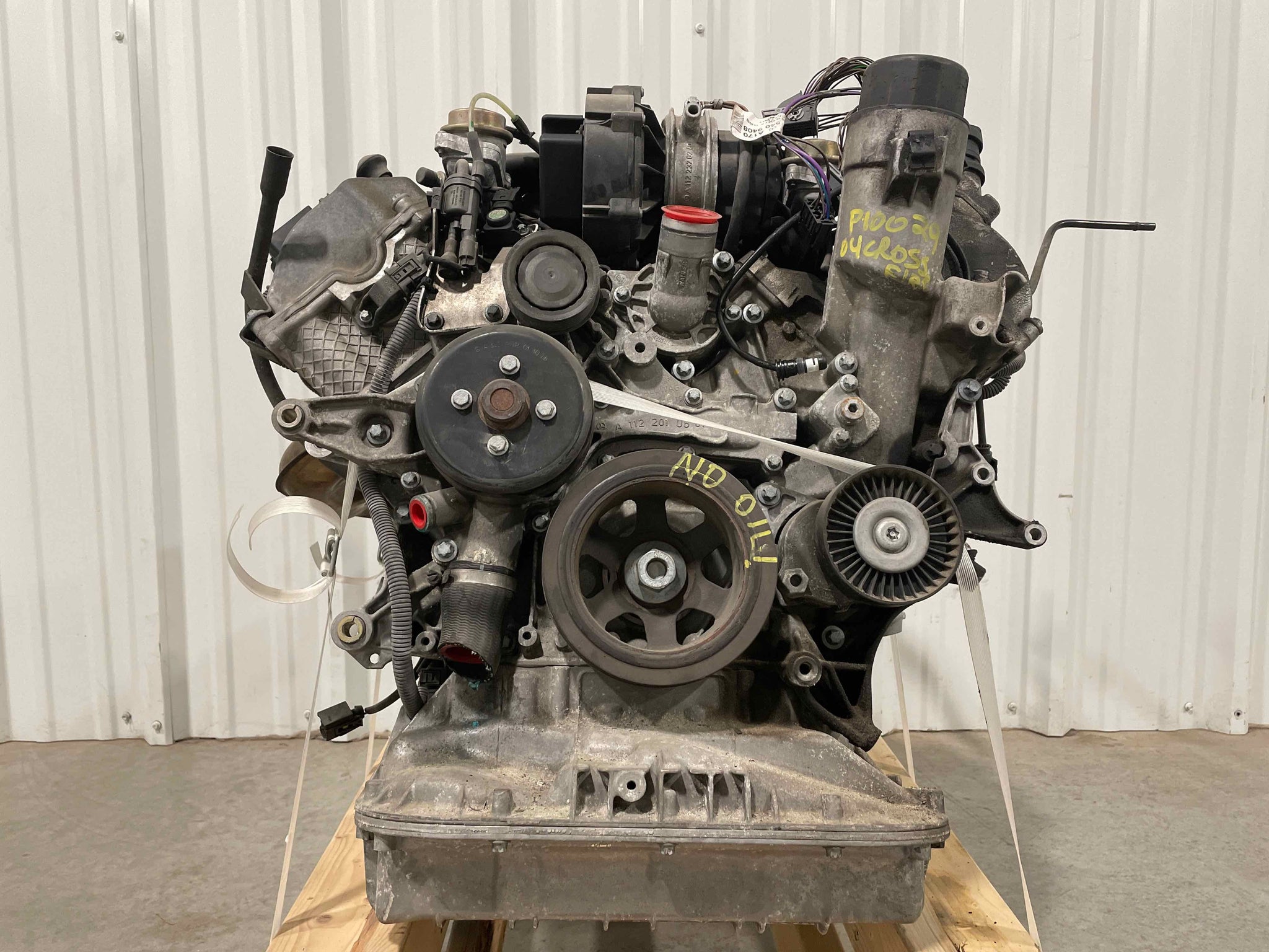 This is a quality Used OEM Engine removed from a 2004 CROSSFIRE and covered by our standard 6 Month Money Back Part Guarantee. This engine has 33000 miles on it. When new vehicles arrive, our experienced inventory staff will run the car to operating temperature. We check for any smoking, leaking or noises. When dismantled, the car will again be brought up to operating temperature to ensure there is no noise or smoking. Once the engine is pulled from the vehicle it is brought over to our engine and transmission staff that will look it over once more before putting it onto our shelf or packaging it for shipment. Many of the engines we list are still in vehicles, in which case the engine will be run and tested before being shipped.All engines are sold as a long block which includes Oil pan, Block, Heads and Valve Covers. Any other included components are considered convenience items and are not covered by our Guarantee. Almost all engines will include intake manifolds, exhaust manifolds, fuel system, harness and sensors. You should expect to use your existing intake manifold(s), exhaust manifold(s), sensors, and harness to eliminate complications when installing a used engine.