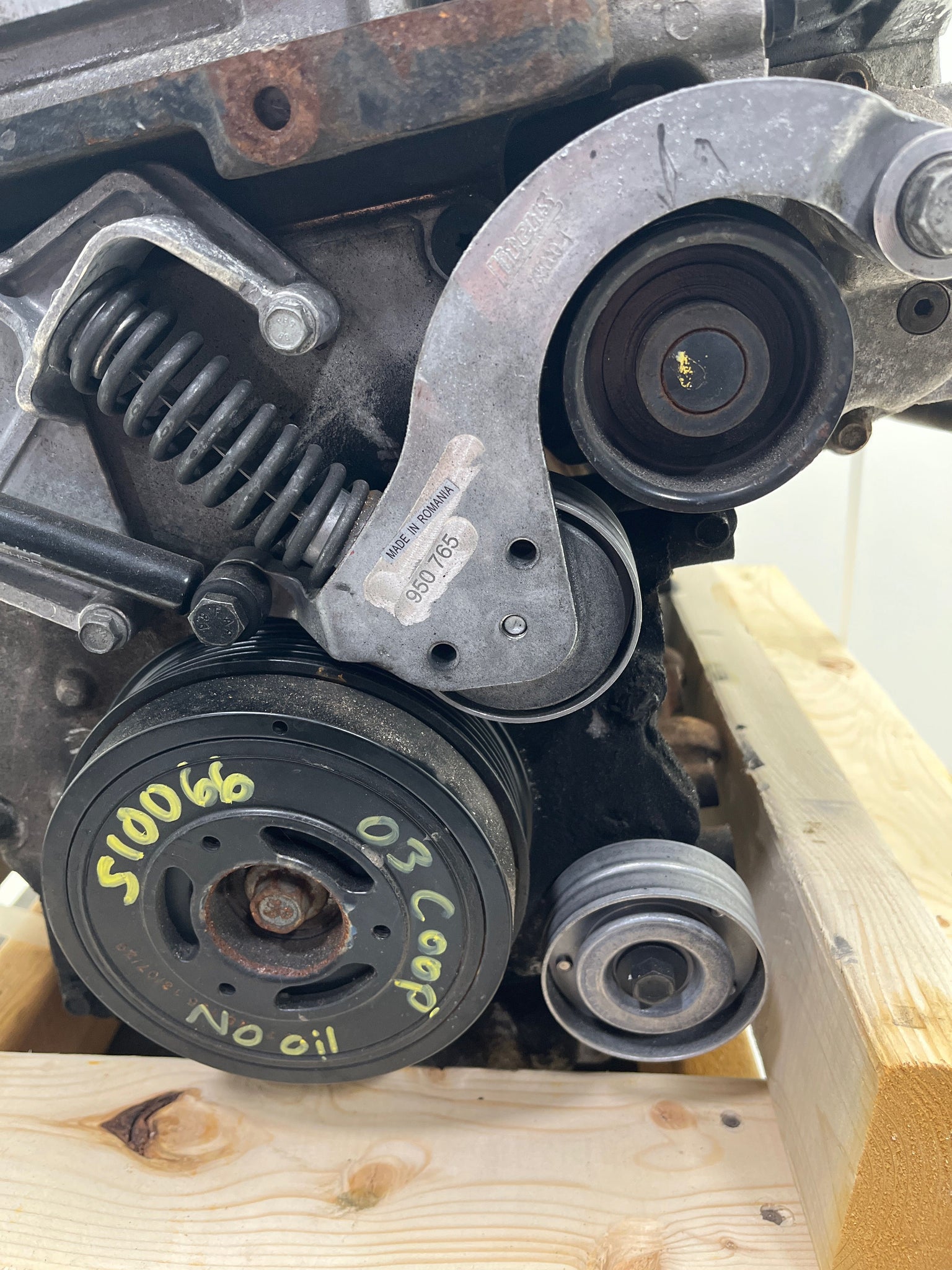 This is a quality Used OEM Engine removed from a 2003 MINI COOPER and covered by our standard 6 Month Money Back Part Guarantee. This engine has 38000 miles on it. When new vehicles arrive, our experienced inventory staff will run the car to operating temperature. We check for any smoking, leaking or noises. When dismantled, the car will again be brought up to operating temperature to ensure there is no noise or smoking. Once the engine is pulled from the vehicle it is brought over to our engine and transmission staff that will look it over once more before putting it onto our shelf or packaging it for shipment. Many of the engines we list are still in vehicles, in which case the engine will be run and tested before being shipped.All engines are sold as a long block which includes Oil pan, Block, Heads and Valve Covers. Any other included components are considered convenience items and are not covered by our Guarantee. Almost all engines will include intake manifolds, exhaust manifolds, fuel system, harness and sensors. You should expect to use your existing intake manifold(s), exhaust manifold(s), sensors, and harness to eliminate complications when installing a used engine.