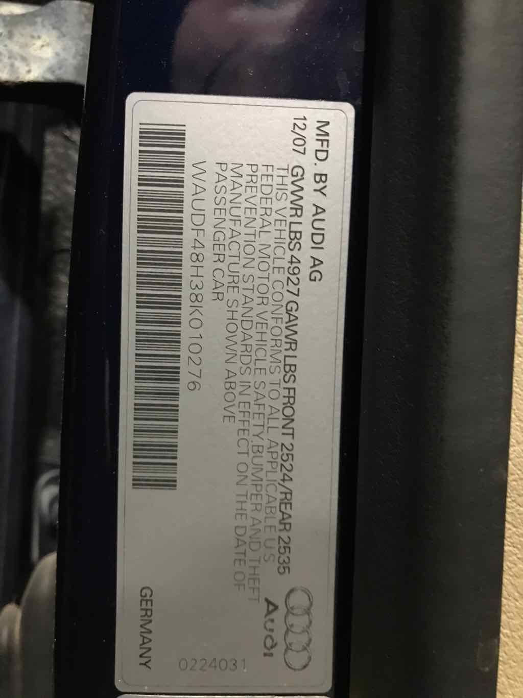 This item is being pulled from the Vehicle Shown below2008 Stock # S08088 VIN # WAUDF48H38K010276