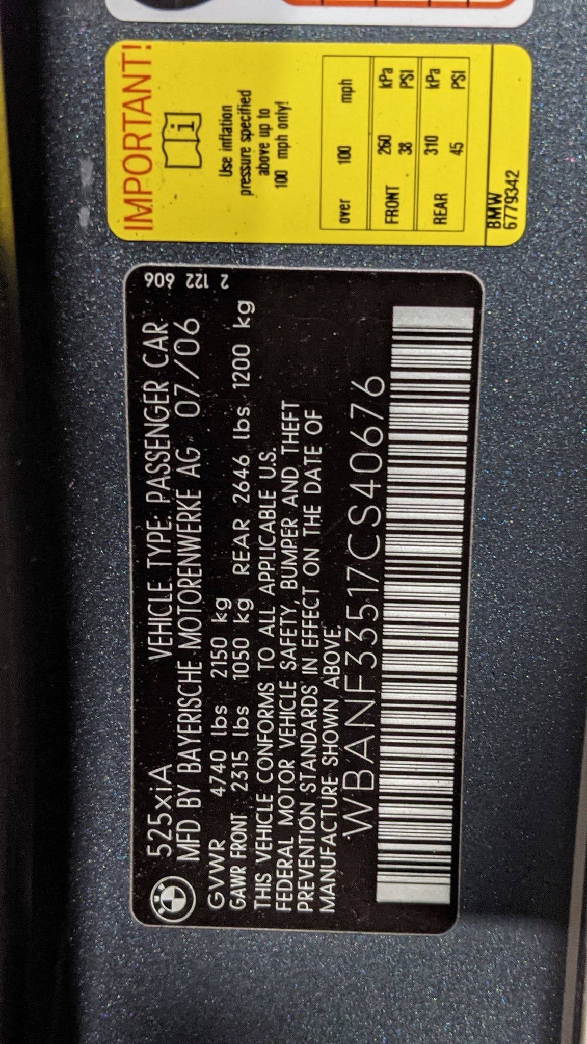 2007 Stock # R10012 VIN # WBANF33517CS40676