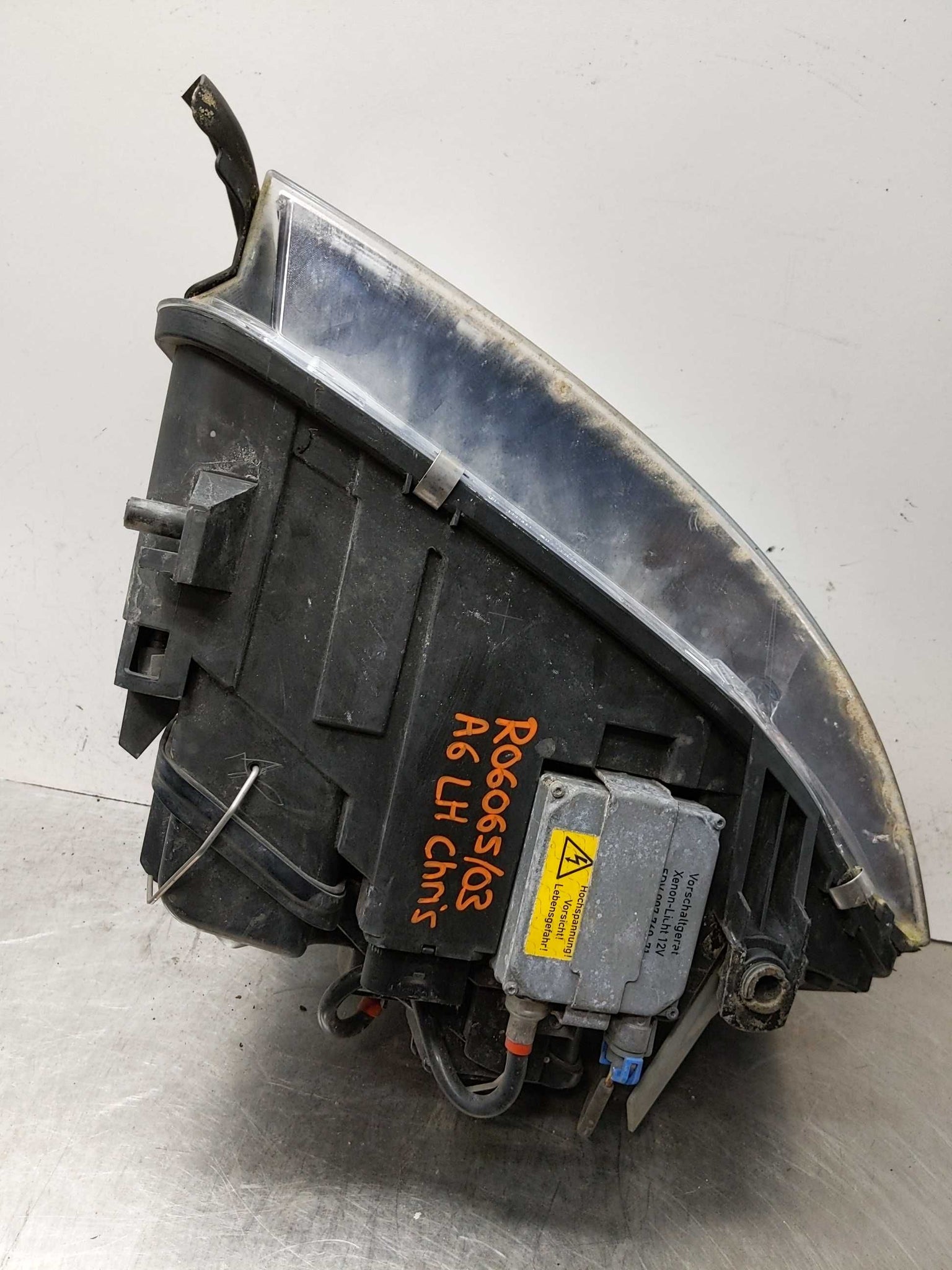This is a quality Used OEM Headlight Assembly pulled from a 2003 AUDI A6 and covered by our standard 6 Month Money Back Part Guarantee. This is sold as the Headlight assembly only without the plug, bulb, or harness from the vehicle. If you have any questions about fitment or condition, please feel free to contact us before buying the item. Thanks!Left is always Drivers Side