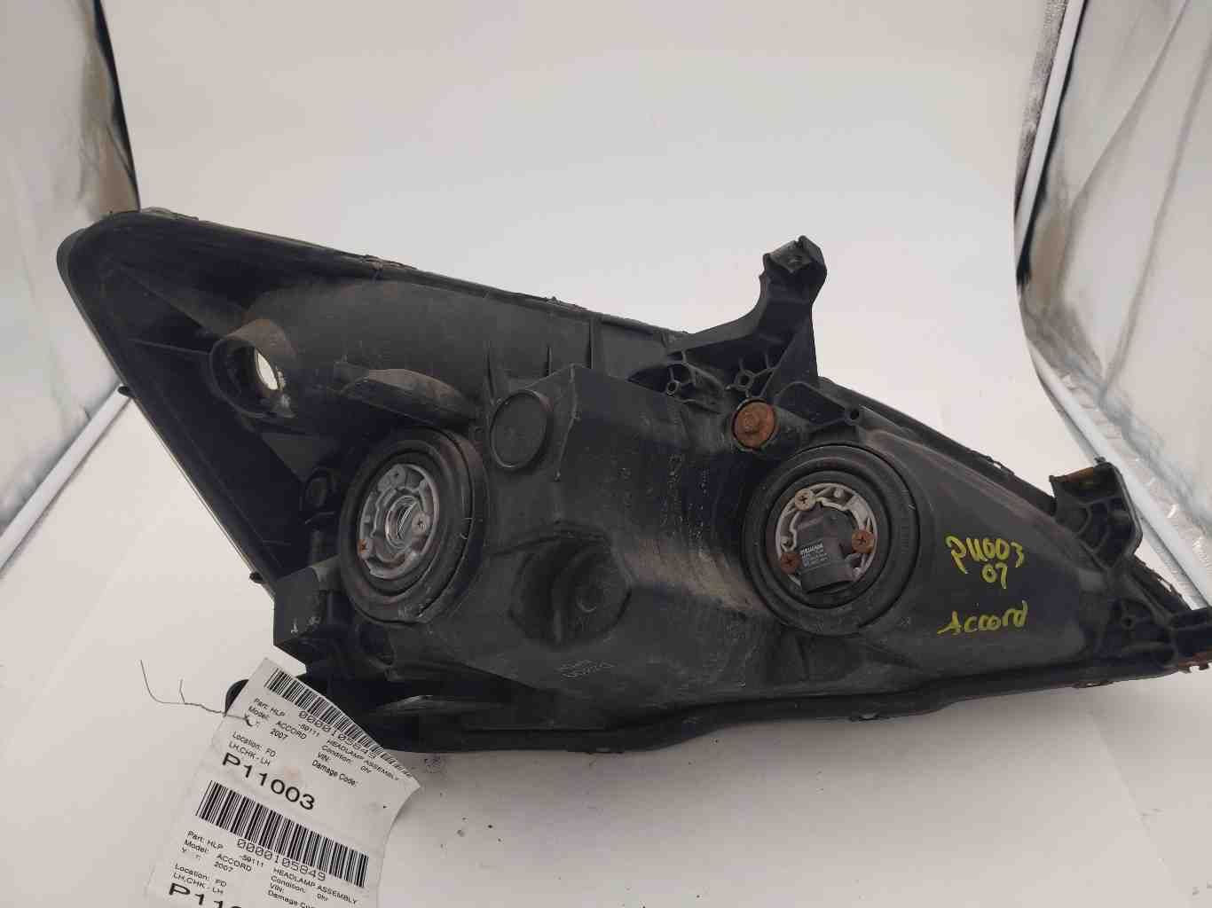 This is a quality Used OEM Headlight Assembly pulled from a 2007 ACCORD and covered by our standard 6 Month Money Back Part Guarantee. This is sold as the Headlight assembly only without the plug, bulb, or harness from the vehicle. If you have any questions about fitment or condition, please feel free to contact us before buying the item. Thanks!Left is always Drivers Side