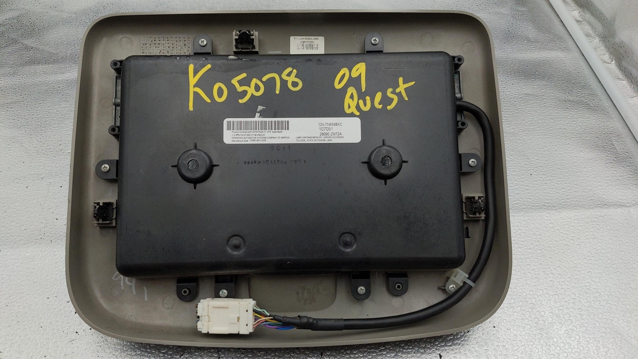 QUEST 08-09 display screen, roof (entertainment, video monitor), w/o rear roof consoleDonor Vehicle