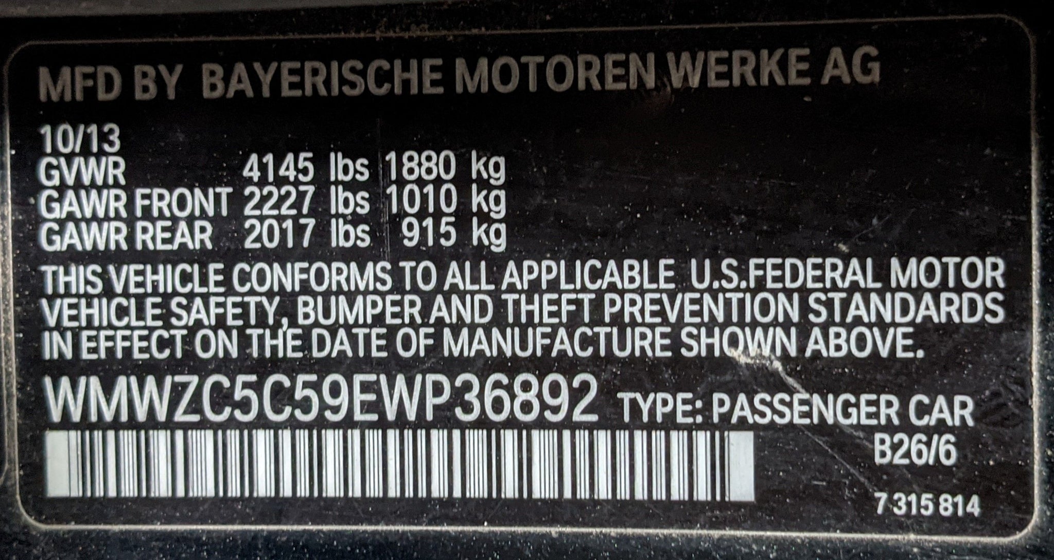 This item is being pulled from the Vehicle Shown below2014 Stock # R08004 VIN # WMWZC5C59EWP36892