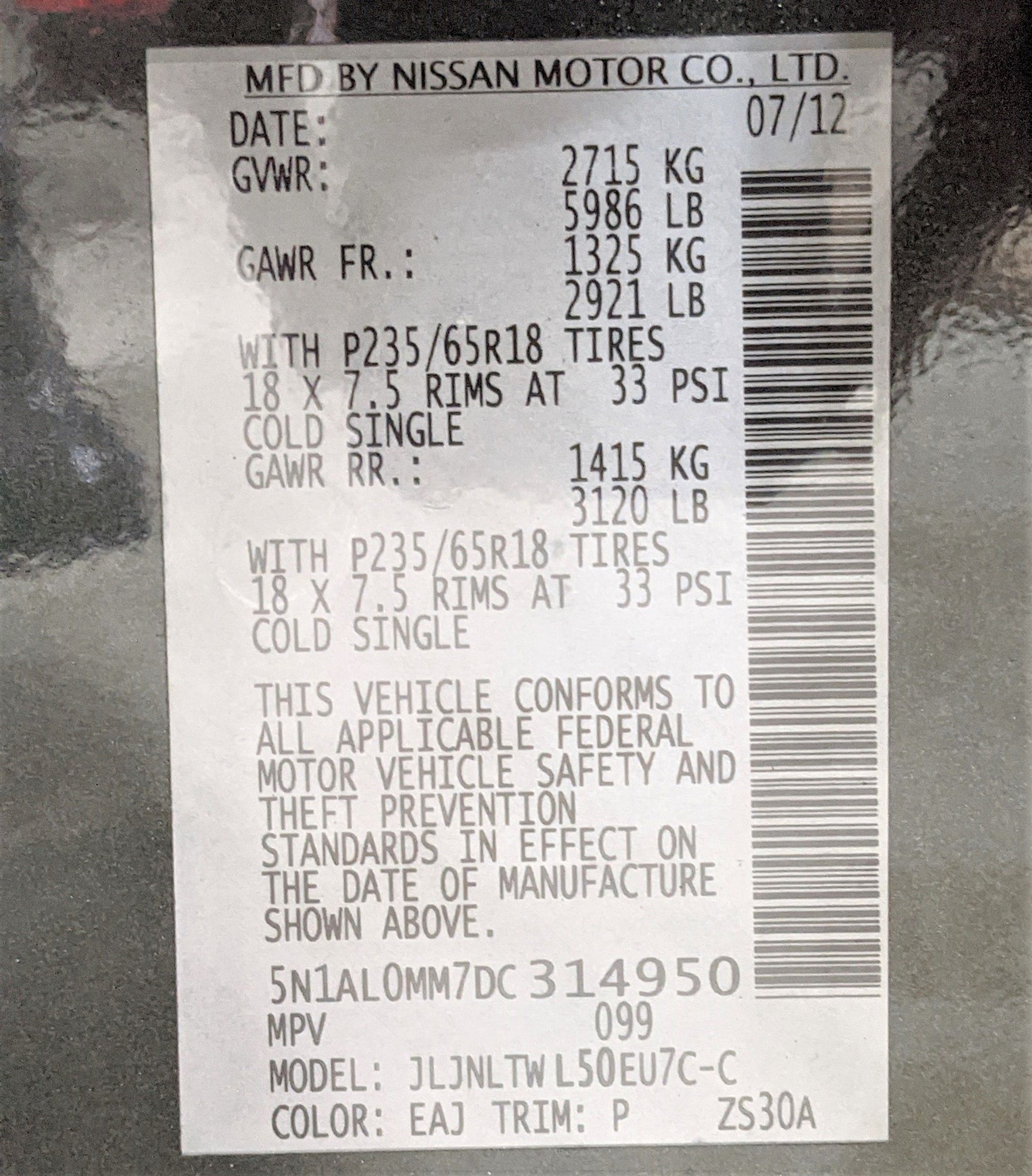 This item is being pulled from the Vehicle Shown below2013 Stock # S02019 VIN # 5N1AL0MM7DC314950