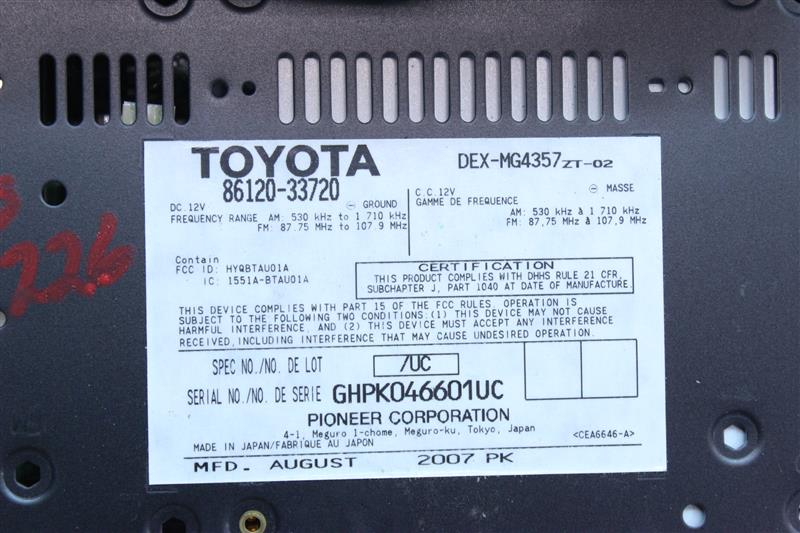 LEXUS ES350 07-09 receiver, ID P1807 on radio faceDonor Vehicle