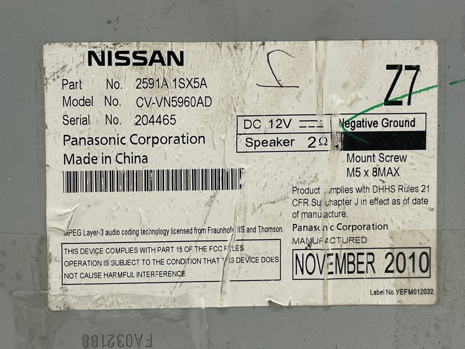 MURANO 11 receiver, w/o navigation system; AM-FM-stereo single disc CD, w/o 2GB music systemMURANO 12 receiver, w/o navigation system; AM-FM-stereo single disc CD, w/o 2GB music system; thru 12/11