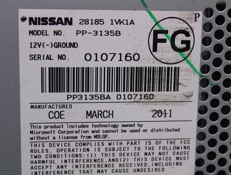 Our Inventory Notes: RADIO, JN8AS5MVXBW680737,281851VK1A