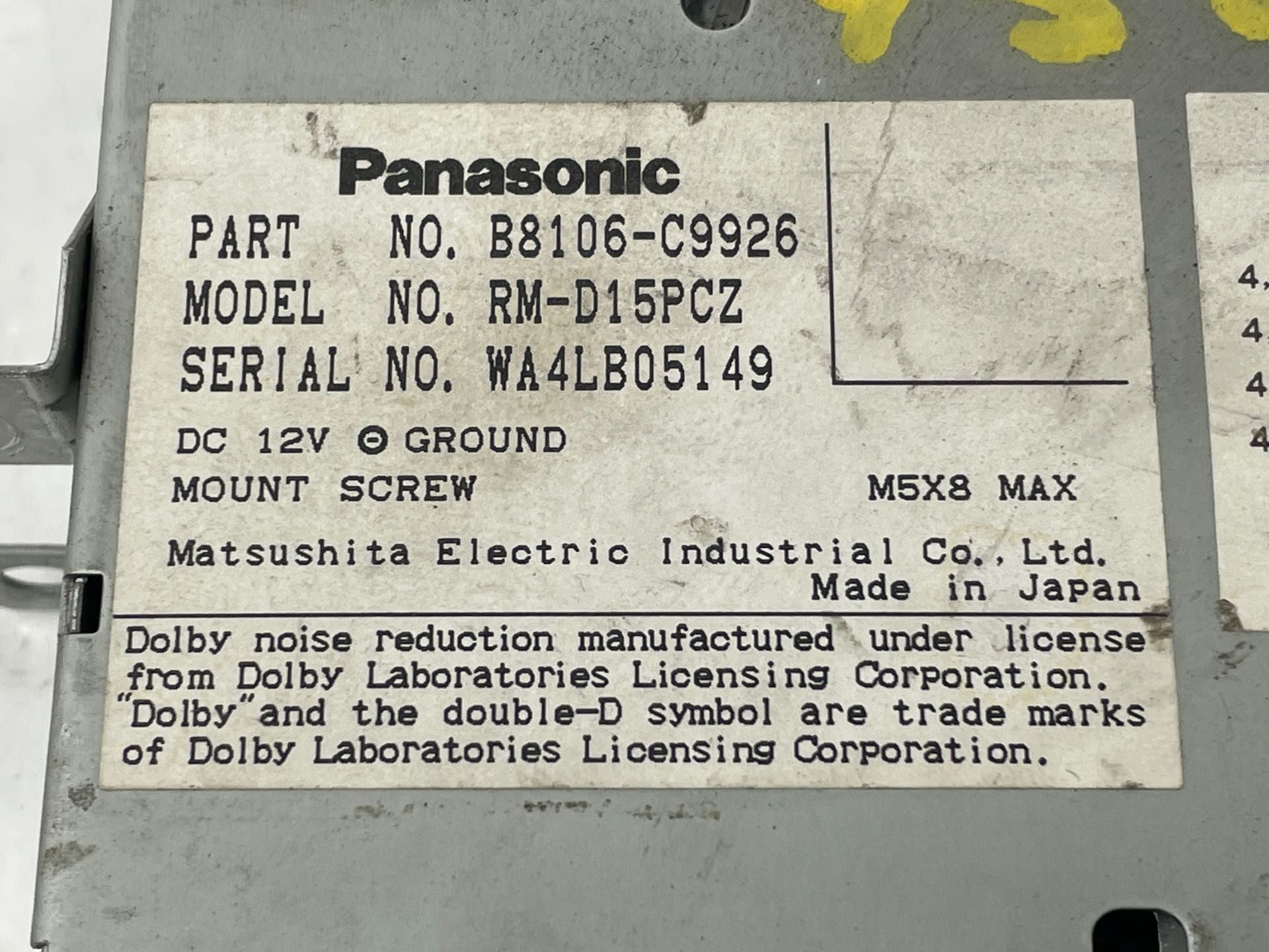 OEM Part Numbers: B8106C9926, RMD15PCZ