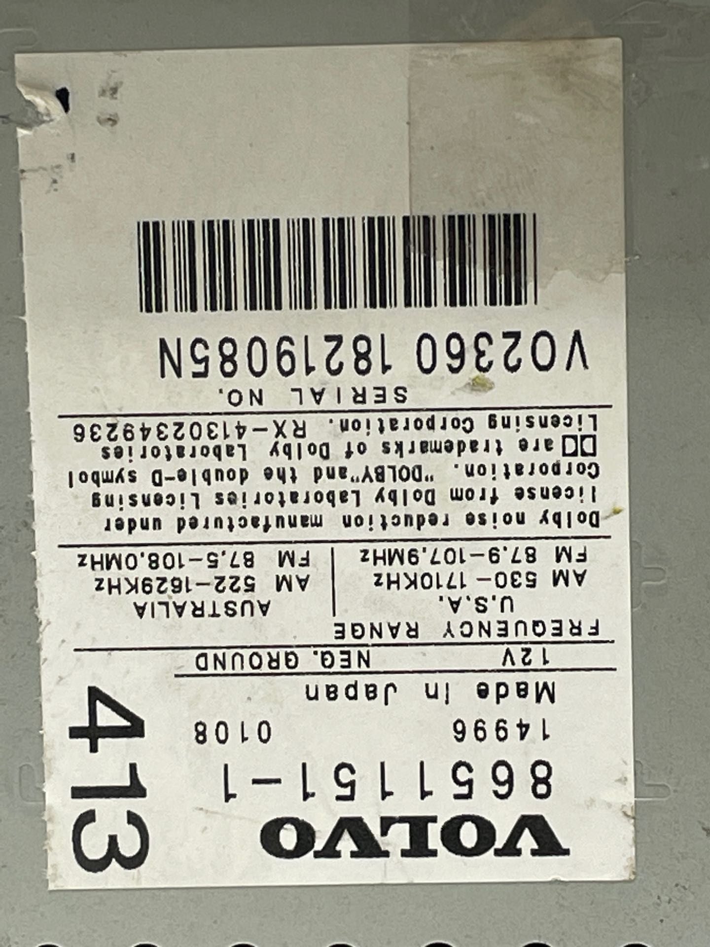 VOLVO 60 SERIES 01-05 receiver, ID HU-413 (on radio)VOLVO 70 SERIES 01-04 SW, receiver, AM-FM-cassette, (ID HU-413 on radio)