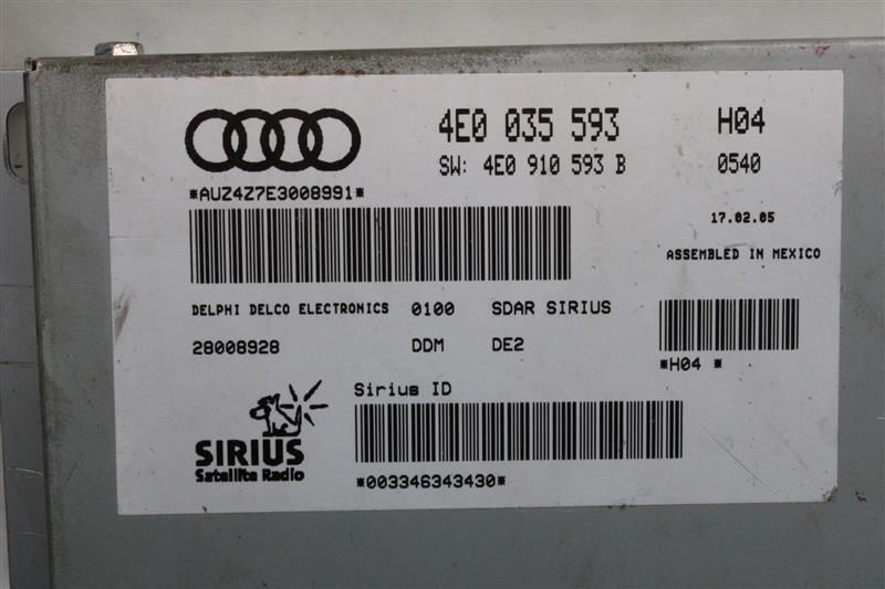 AUDI A6 05-09 satellite receiver, SiriusAUDI A8 03 VIN E (8th digit), satellite receiver, Sirius