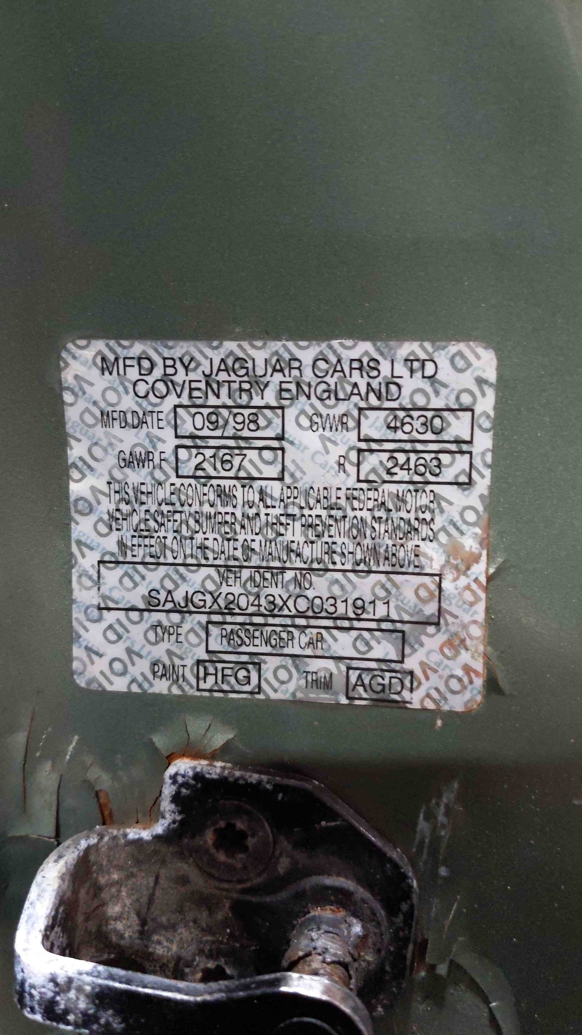 1999 Jaguar XK8 Stock # S05110 VIN # SAJGX2043XC031911