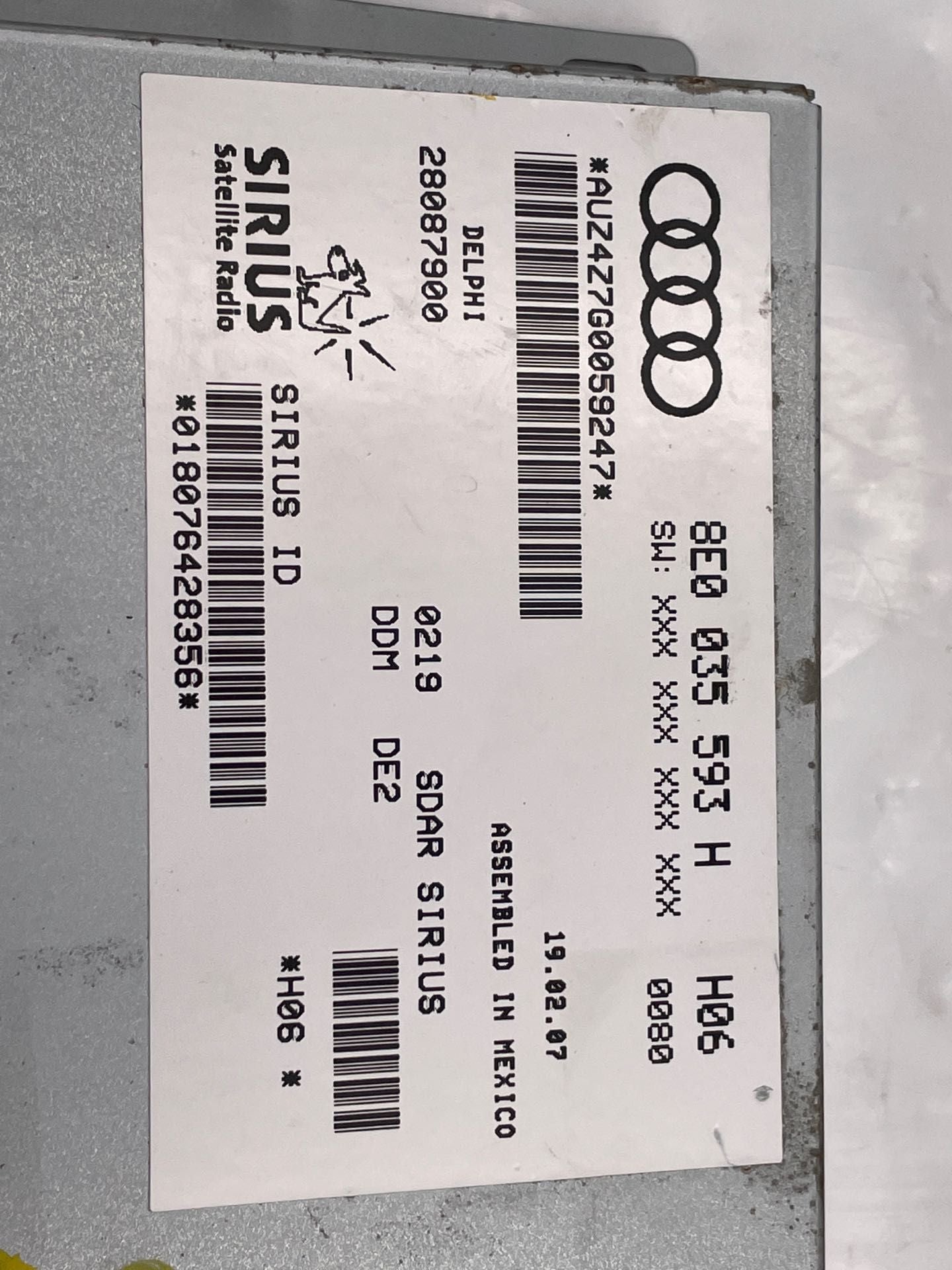 AUDI S4 06-08 Conv, satellite radio, control module, Sirius, single antenna connector