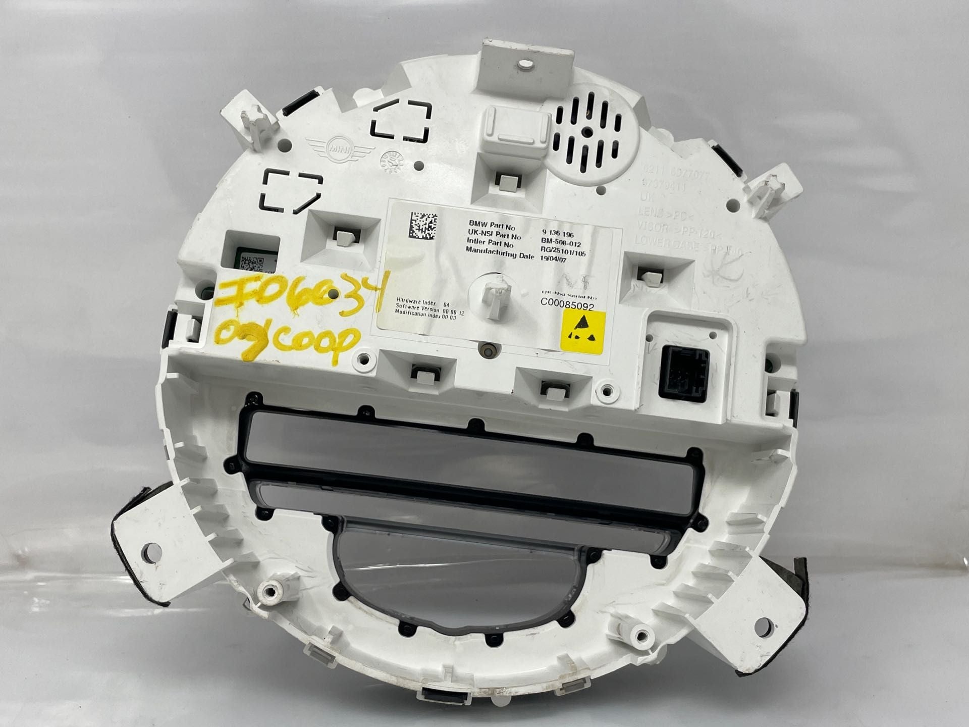 CLUBMAN 08-10 speedometer (cluster), w/o navigation system; MPH (US market), w/High Definition radioMINI COOPER 07-10 HT, speedometer (cluster), w/o navigation system; MPH (US market), w/High Definition radio