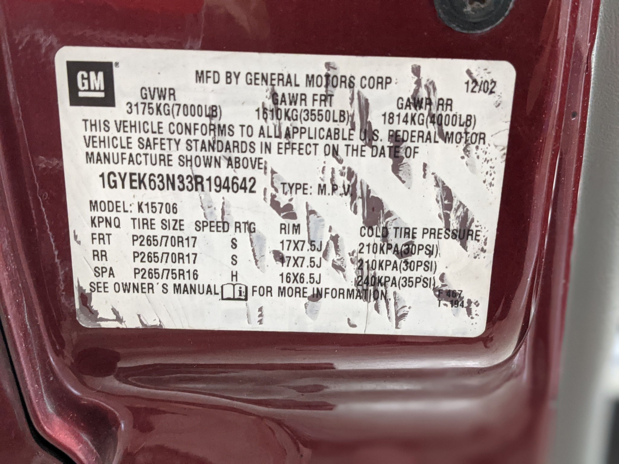 2003 Cadillac Escalade Stock # R07092 VIN # 1GYEK63N33R194642