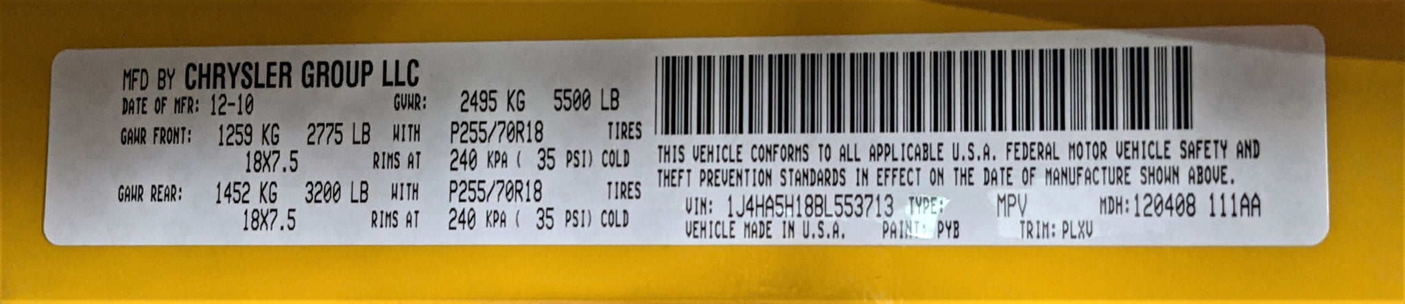 This item is being pulled from the Vehicle Shown below2011 Jeep Wrangler Stock # S02011 VIN # 1J4HA5H18BL553713