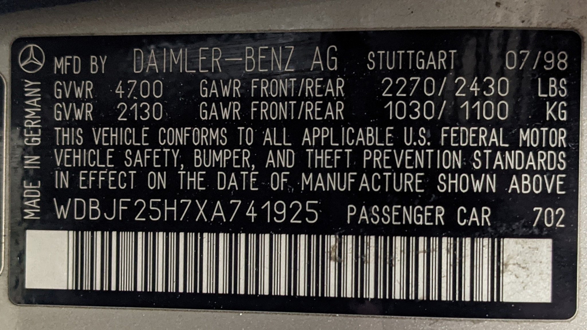This item is being pulled from the Vehicle Shown below1999 Stock # S01026 VIN # WDBJF25H7XA741925