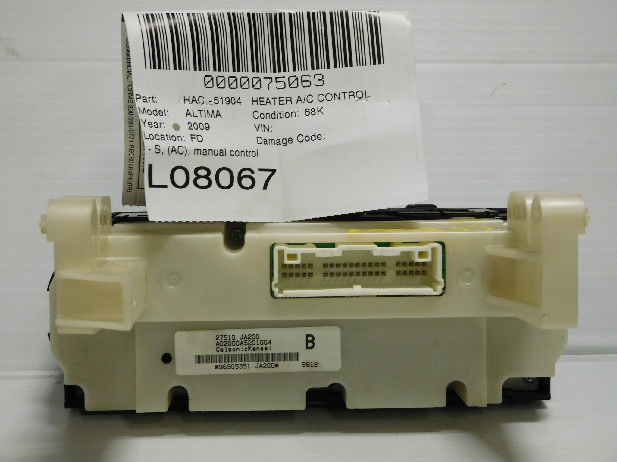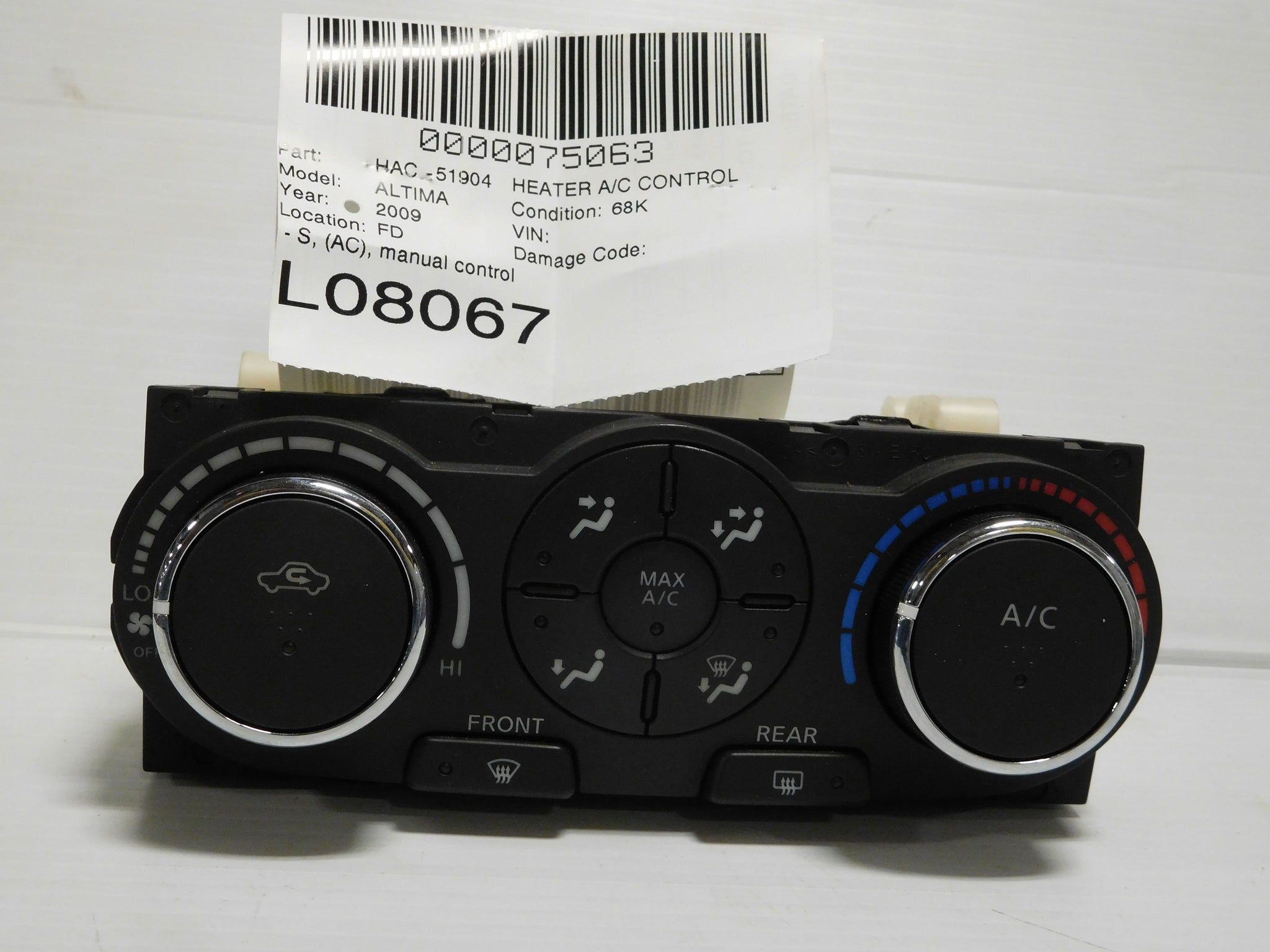 ALTIMA 07-09 SE, (AC), manual controlALTIMA 09 Base, (AC), (manual control)