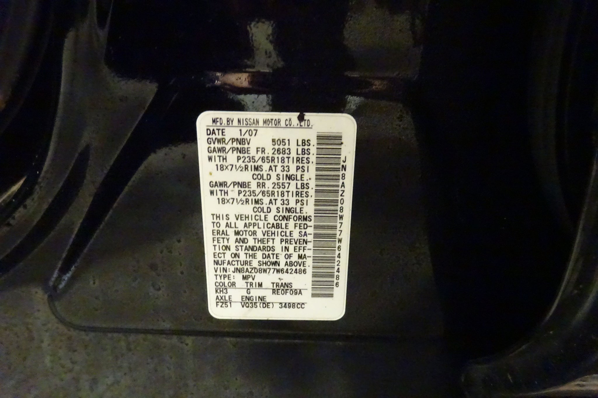 This item is being pulled from the Vehicle Shown below2007 Nissan Murano Stock # M01033 VIN # JN8AZ08W77W642486